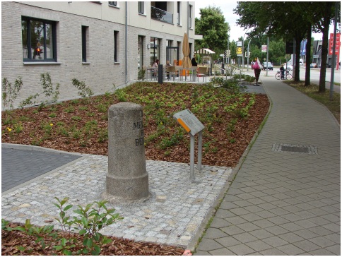 Wieder freie Sichtbarkeit des preußischen Rundsockelsteines in Oranienburg am neuen Cafe „Am Meilenstein“